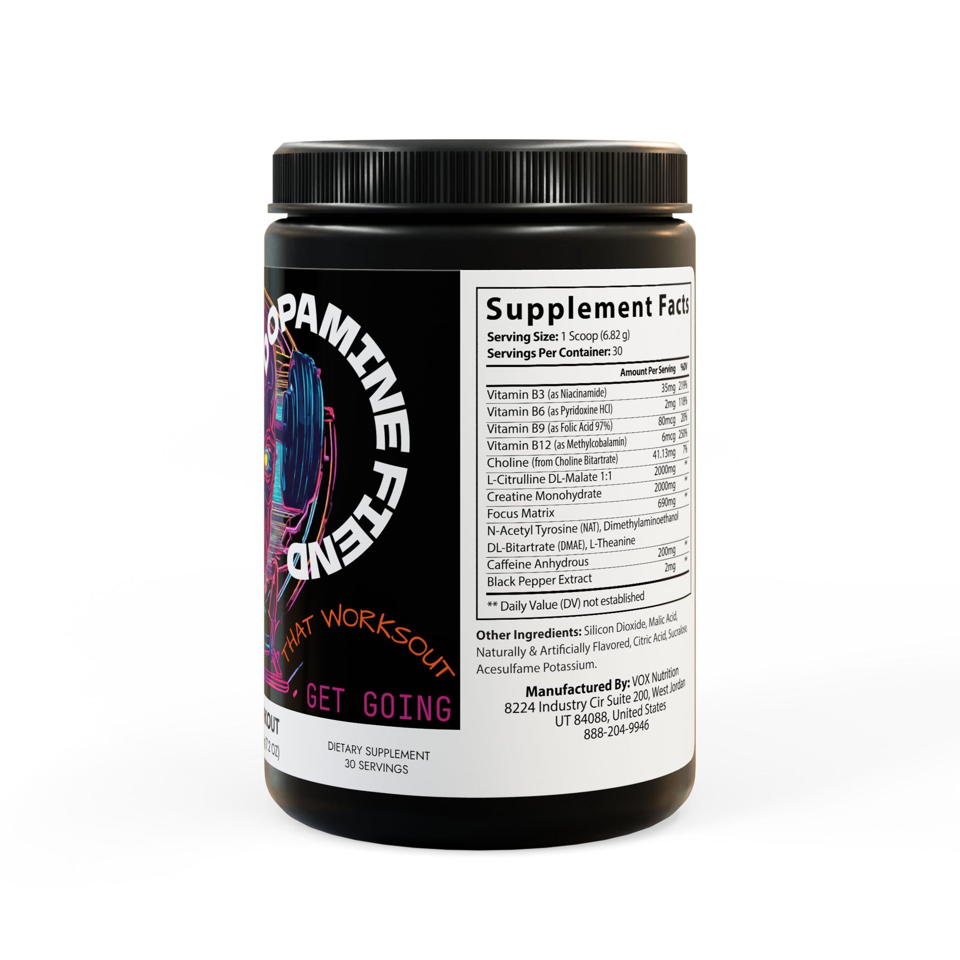 The Pre-Workout Supplement is formulated to support improved exercise performance, enhanced pump, optimized energy levels, and taking your workouts to the next level. Caffeine supplementation is included to support acute exercise performance, endurance, and recovery. Additionally, it contains a unique non-protein amino acid found in green tea (Camellia sinensis) to support optimal exercise performance. Dopamine Fiend is sure to give you an extreme boost of energy that will outlast even the longest workout, without the hard crash! Step up your game with the pre workout that worksout!